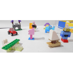 Vendu avec la notice de montage comportant quelques exemples de construction et bien d'autres pièces pour inventer de jolies créations.