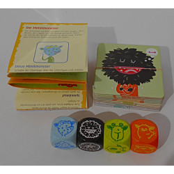 Contenu : 4 dés en bois, 12 cartes avec monstres, règle du jeu.