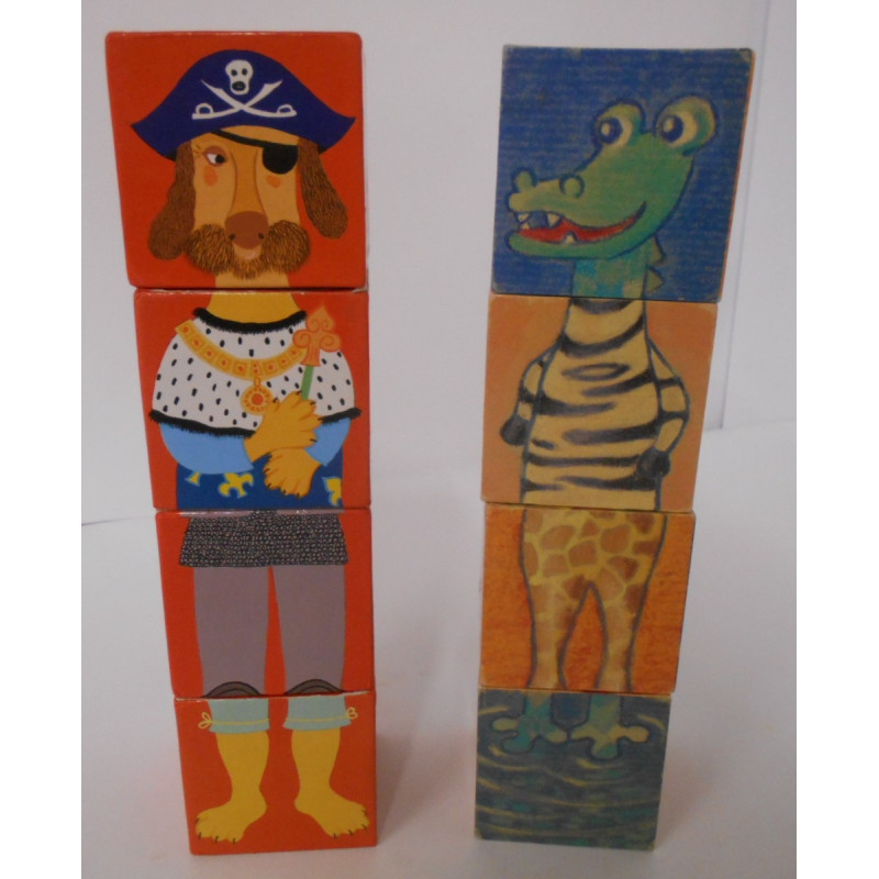 8 cubes en carton permettant à l'enfant de reconstituer des personnages ou d'en inventer d'autres.