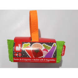 Un joli papier garni de 8 variétés de légumes en feutrine pour jouer à la marchande.