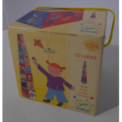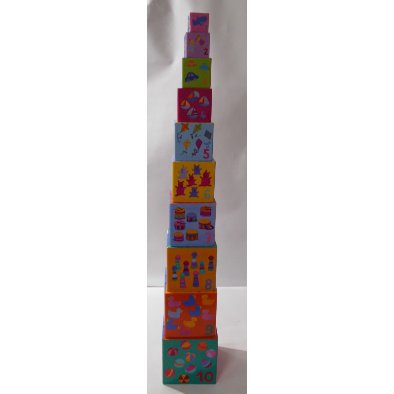 Cubes empilables en carton Djeco numérotés de 1 à 10.