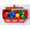Maison ferme sympathique avec plusieurs sortes d'animaux ainsi que des fermiers.