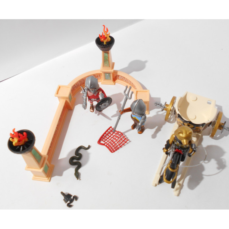 Playmobil historie 3 personnages, 1 char avec cheval, 1 arène