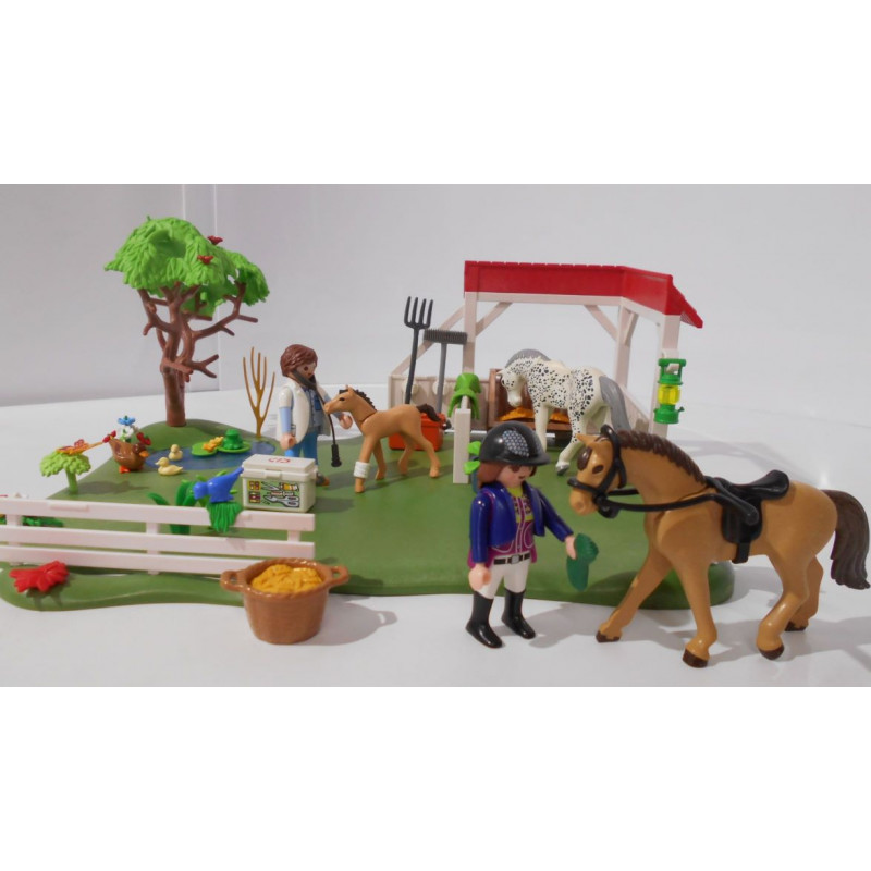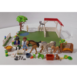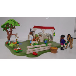 Inclus : Un vétérinaire, une cavalière, deux chevaux, un poulain, un canard et une grenouille avec un nénuphar.