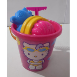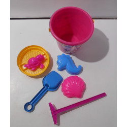 Seau de plage diamètre 20 cm hauteur 17 cm + accessoires (pelle, râteau, arrosoir et tamis)